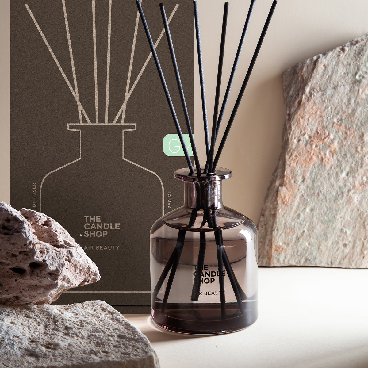 Elaborado con un elegante envase de vidrio y varillas de fibra de alta difusión, nuestro difusor libera el aroma de manera pura y duradera. Es la calidad que tu espacio merece.