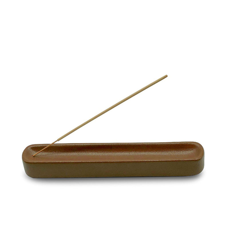 porta incienso de cerámica de 3 cm de ancho, 3 cm de alto y 23 cm de Largo. No incluye incienso.
