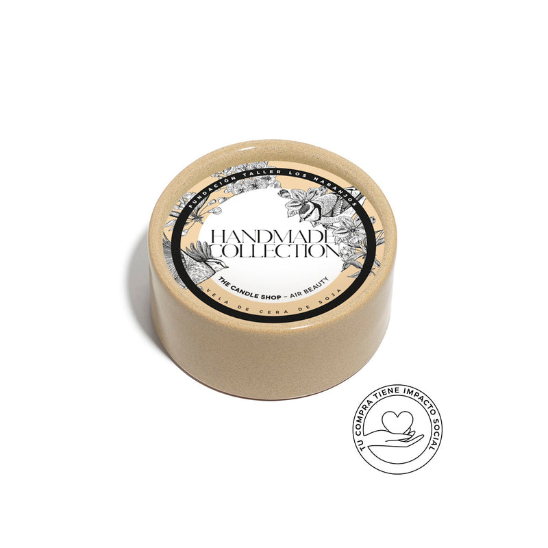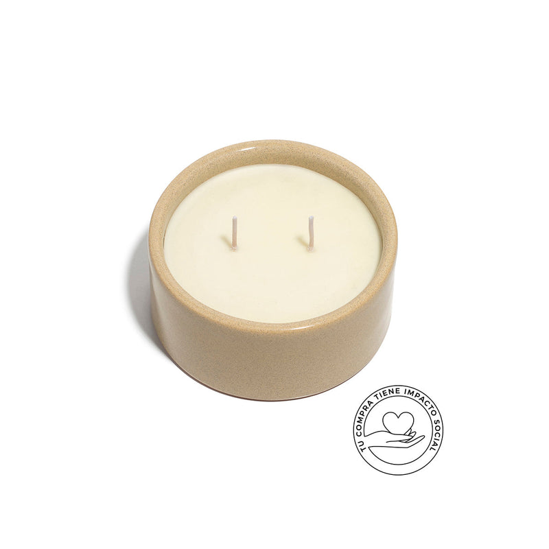 Vela aromática vegetal en exclusiva cerámica de 12 cm de diámetro y 6 cm de alto.