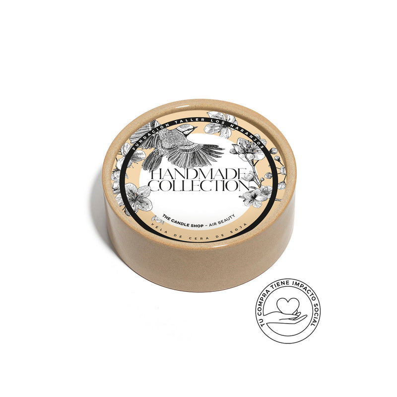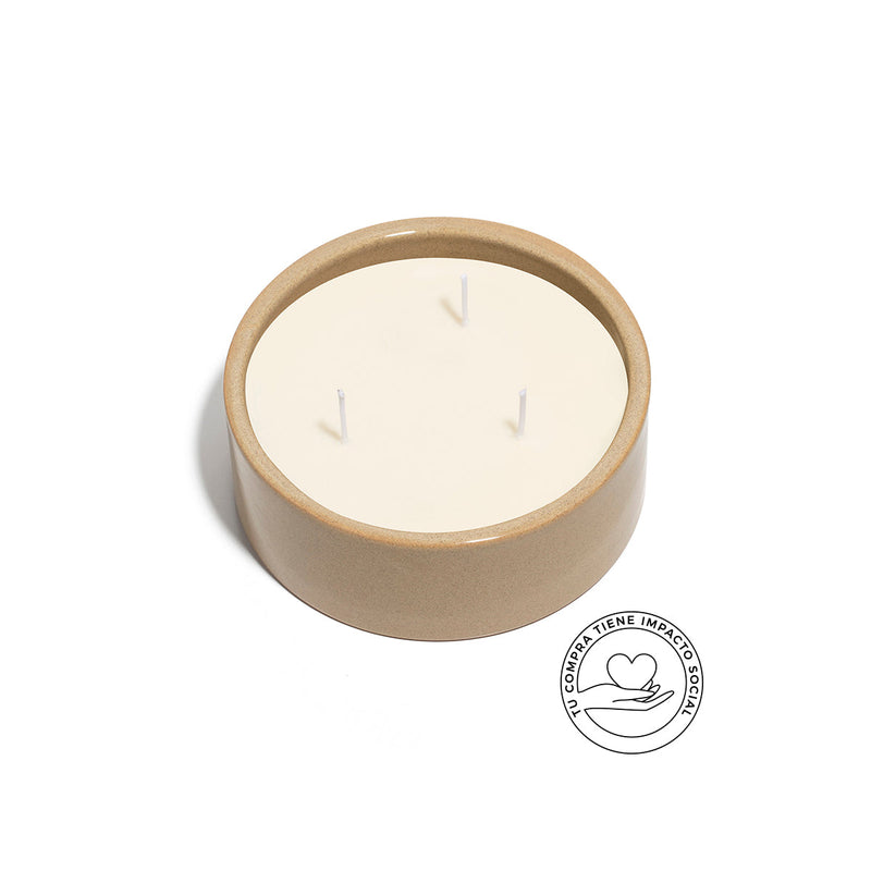 Vela aromática vegetal en exclusiva cerámica de 16 cm de diámetro y 6 cm de alto.