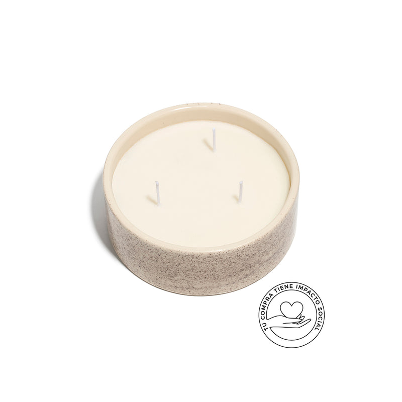 Vela aromática vegetal en exclusiva cerámica de 16 cm de diámetro y 6 cm de alto.