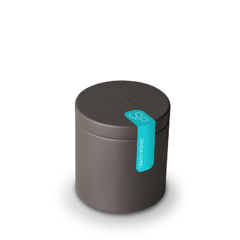 Vela vegetal en envase metálico esmaltado de 7,5cm de diámetro y 8 cm de alto.