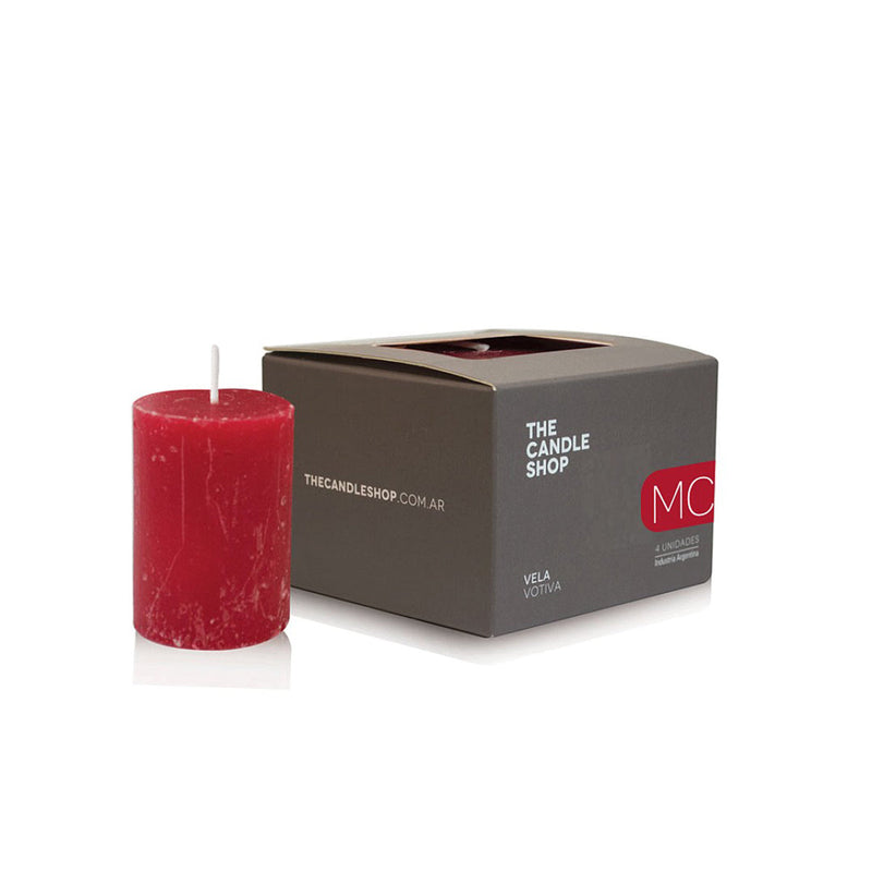 Vela votiva de 4 cm de diámetro y 5 cm de alto en caja de 4 unidades