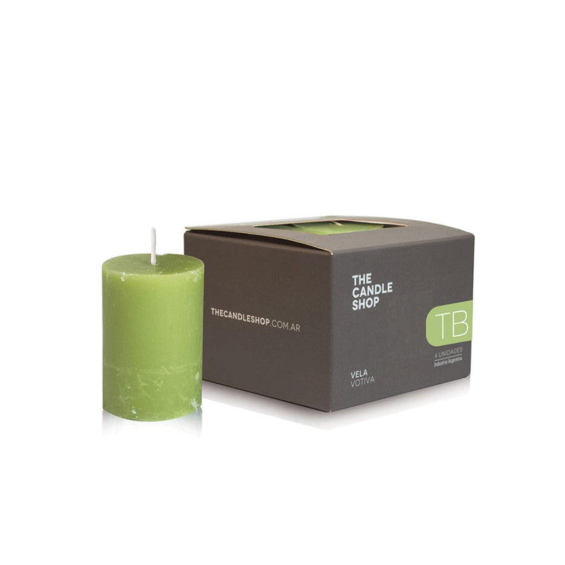 Vela votiva de 4 cm de diámetro y 5 cm de alto en caja de 4 unidades