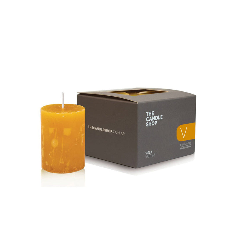 Vela votiva de 4 cm de diámetro y 5 cm de alto en caja de 4 unidades